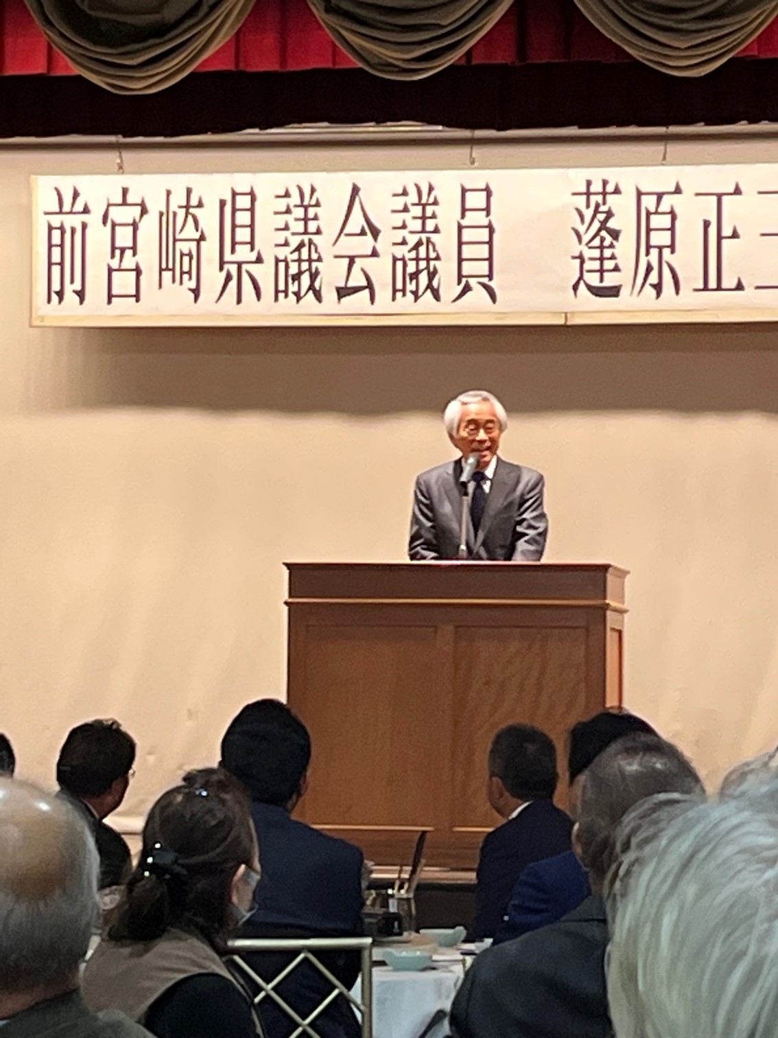 令和5年11月30日(木)18時半より都城グリーンホテルにて、当一般社団法人霧島工業クラブ顧問でもあります蓬原前県議会議員の慰労会が開催されました。蓬原正三氏は、令和5年4月に宮崎県県議会議員を勇退されましたが、三股町議会議員2期、宮崎県議会議員7期、通算36年間の長きに亘り地域発展のためご尽力されました。このご活躍に対し敬意を表し感謝の意を込めて開催された慰労会には、当クラブからも多数の会員企業等の関係者が出席しました。