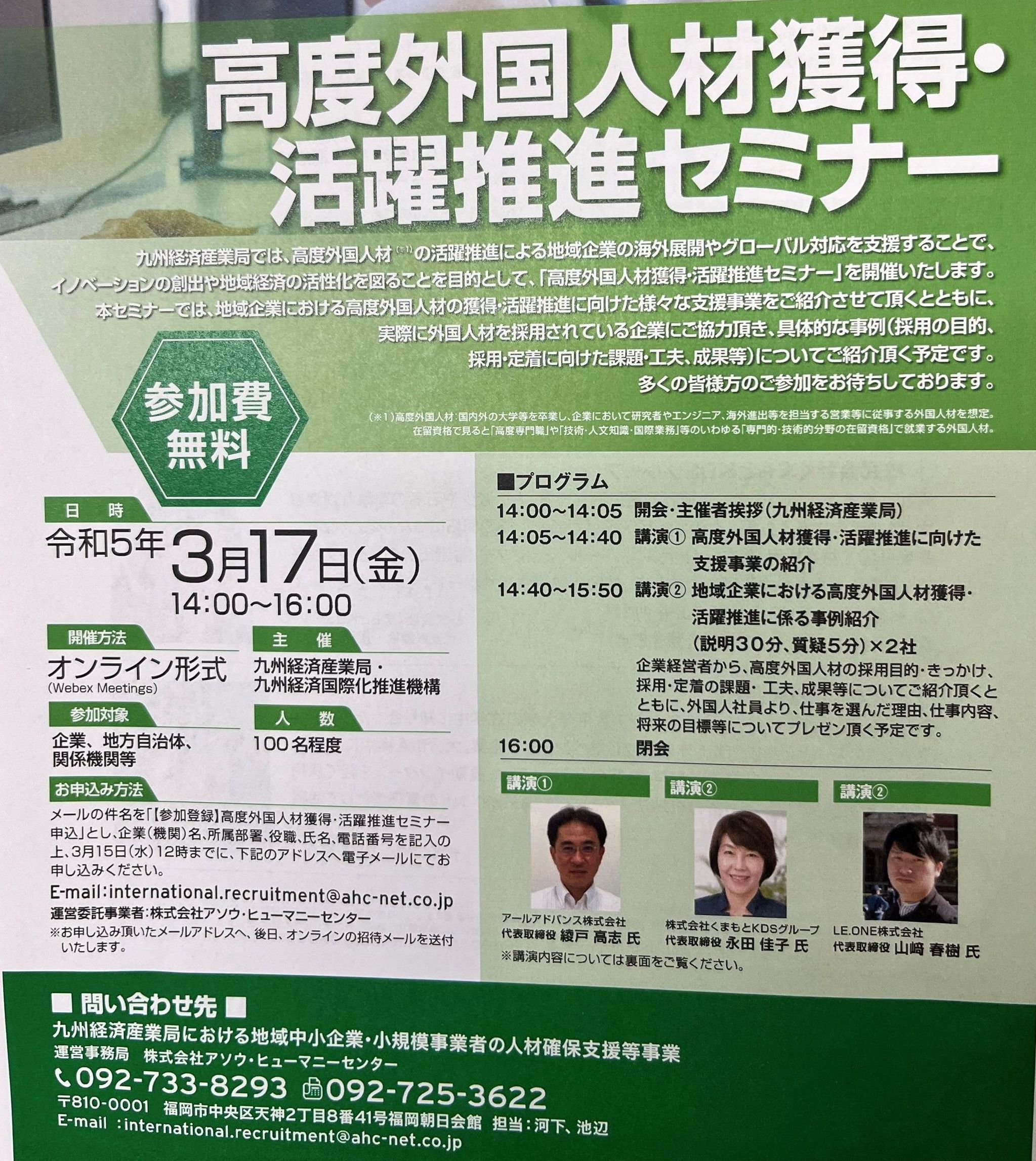 【お知らせ】 高度外国人材獲得・活躍推進セミナーを開催します 2023.3,17