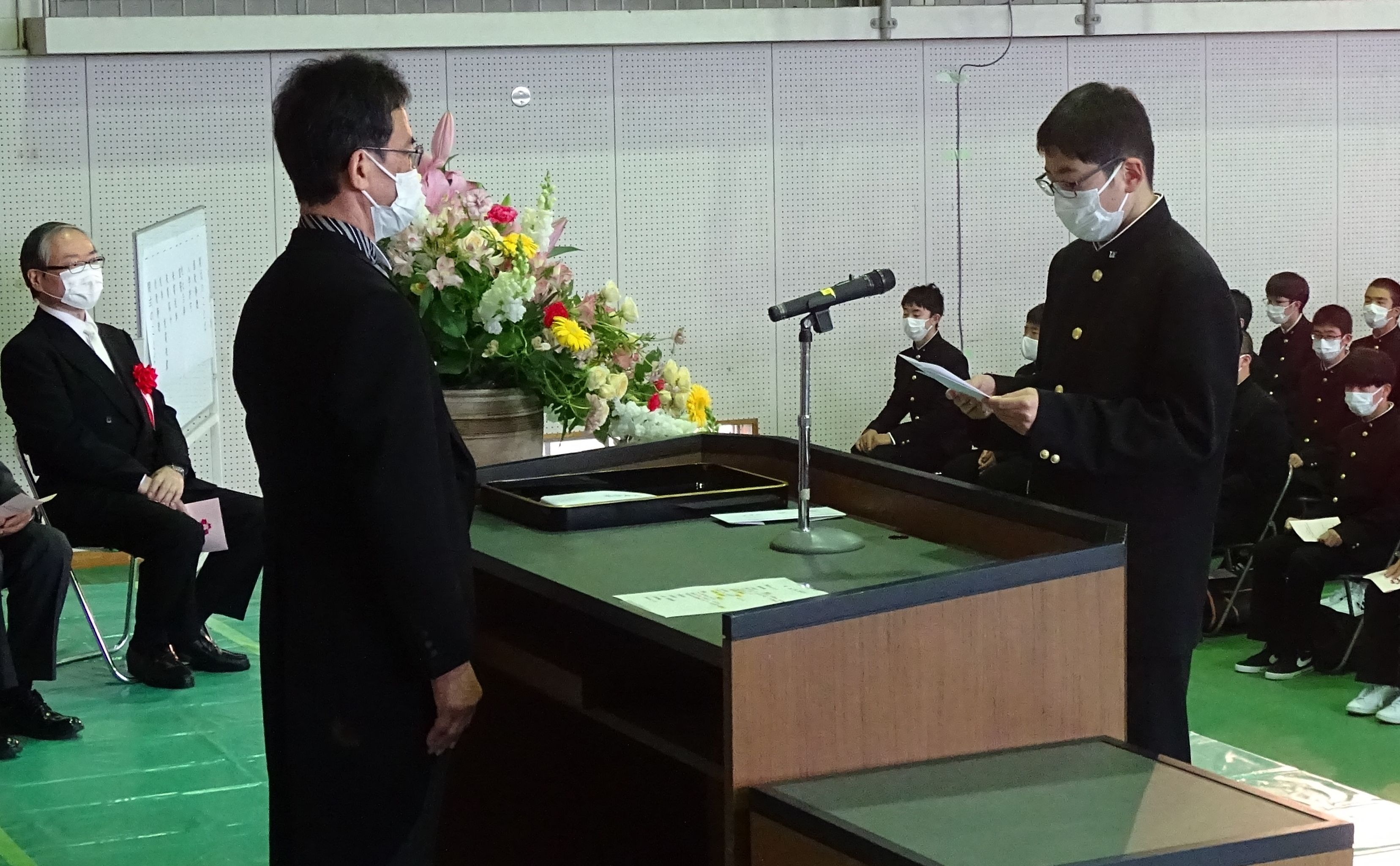 校長告辞では、和田校長から「新入生の皆さんが、快適で健全な学生生活を送れるように教職員一同全力で支援をします。新入生の皆さんが都城高専を卒業するとき、「都城高専で学んでよかった」と思えるようにしたいと考えています。今後の学生生活を大いに楽しんでください。」との言葉が送られました。