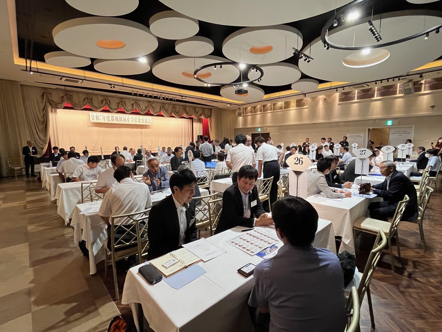 昨年に引き続き、百名を超える関係者の皆さまにお申し込みをいただき、情報交換会には、企業30社から64名、学校13校から30名、官公庁・団体12団体から 28名の合計122名の方にご出席いただきました。