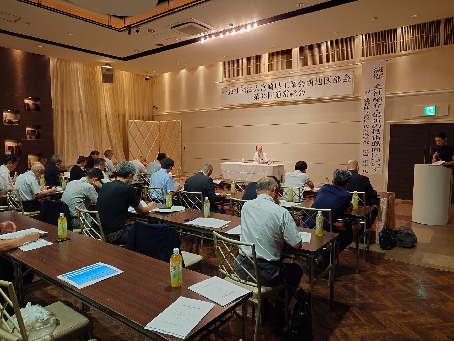 令和7年7月15日(火)都城グリーンホテルにて(一社)宮崎県工業会県西地区部会の通常総会が開催されました。通常総会にて、令和6年度事業報告及び収支決算が報告された後、令和7年度事業計画及び収支予算(案)が承認されました。