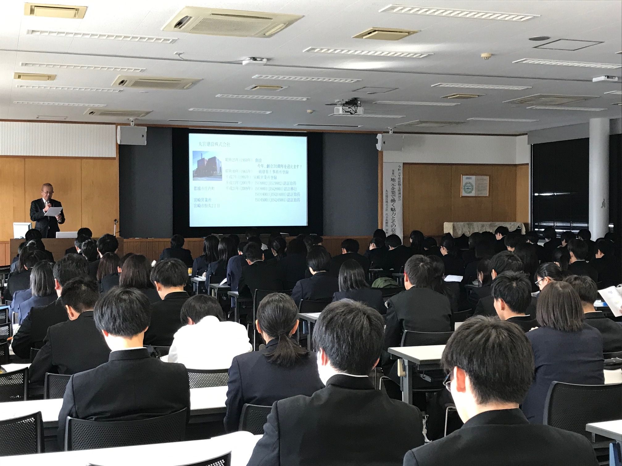 【ニュース】 丸宮建設株式会社 代表取締役の河野一治氏による就職支援講演会が開催されました 2019.1.15