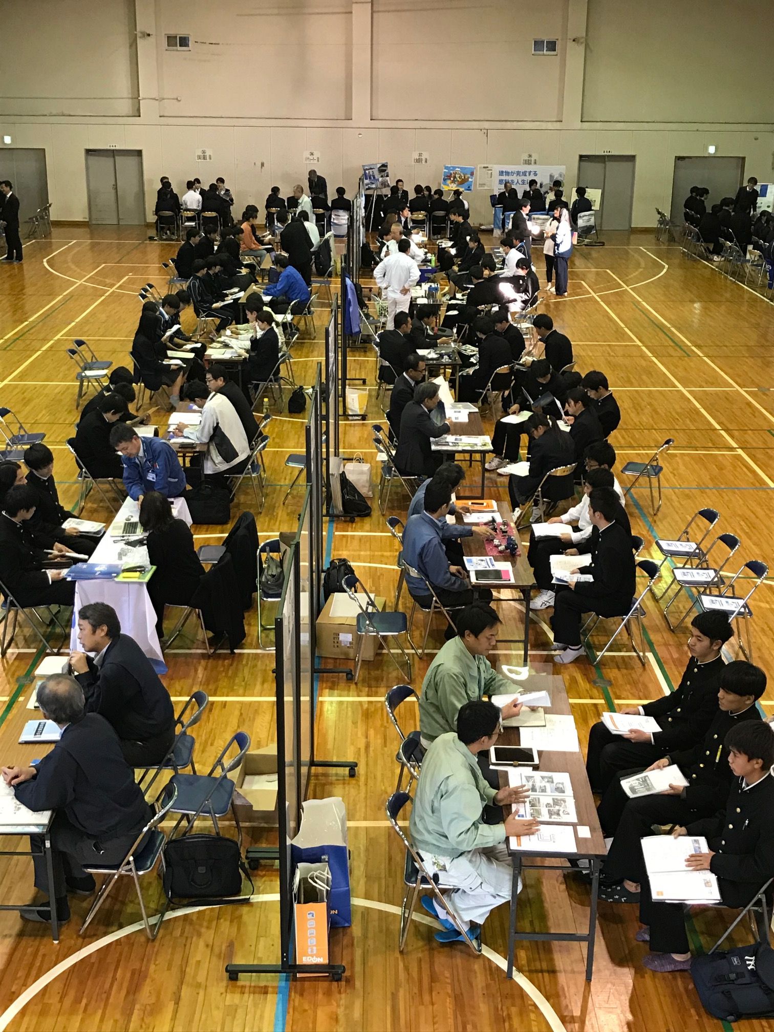 昨年同様、都城高専第一体育館にて開催されましたが、年々参加企業が増加しており、今年は、昨年より10社以上企業が増え、各企業のブースには学生が熱心に企業の方のご説明に聞き入っていました。