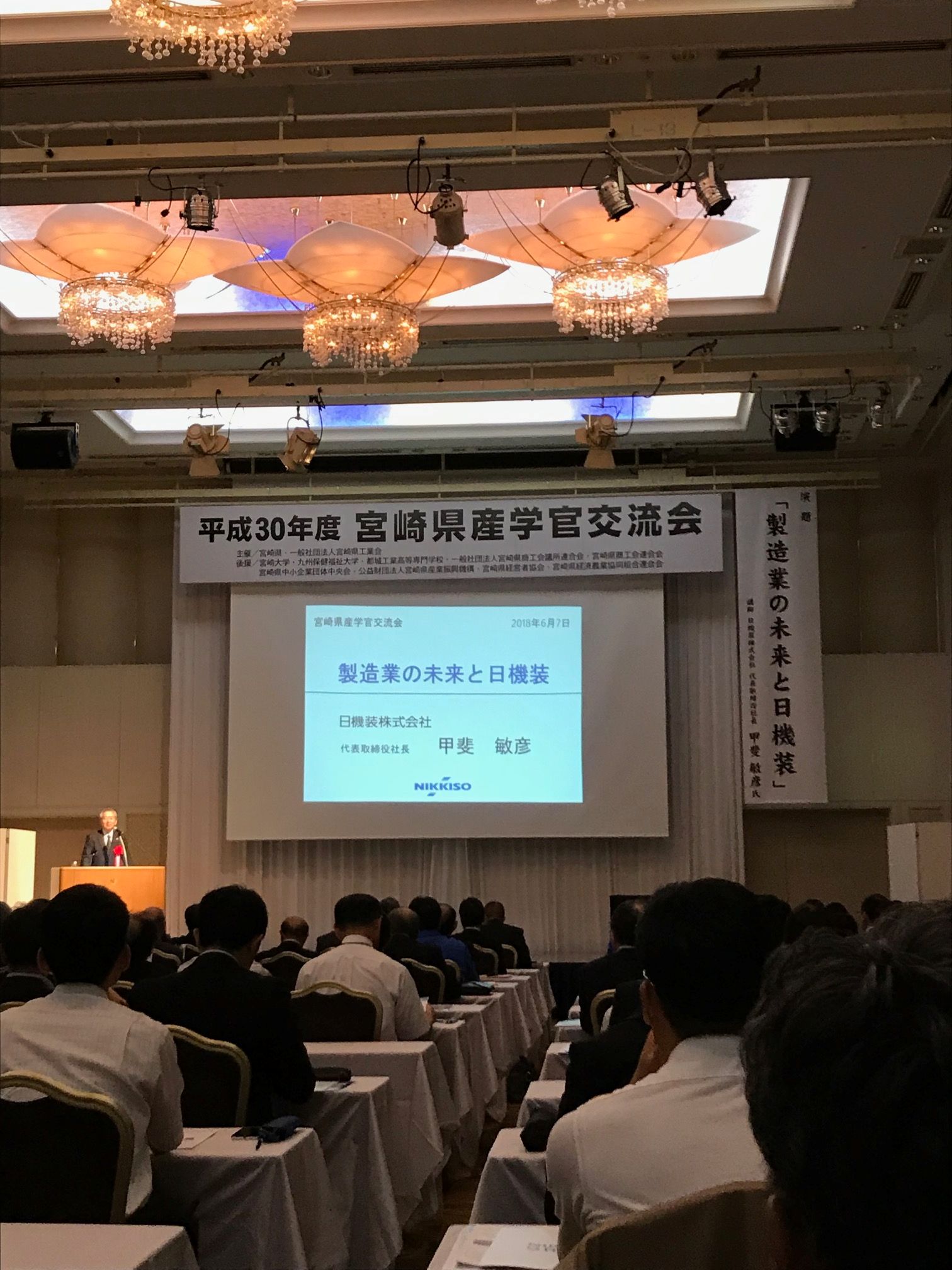 宮崎県、(一社)宮崎県工業会が共催し、宮崎大学、都城高専や(一社)宮崎県商工会議所連合会等9学校・団体が後援して、「宮崎県産学官交流会」が2018年6月7日に宮崎観光ホテルにて開催されました。
