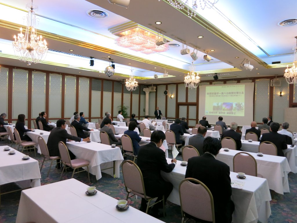 平成29年10月度の例会を平成29年10月18日(水)ホテル中山荘にて開催し、特別講演として宮崎大学農学部応用生物科学科教授の榊原啓之先生に「「時間栄養学−食べる時間を考える」という演題にてご講演をして頂きました。